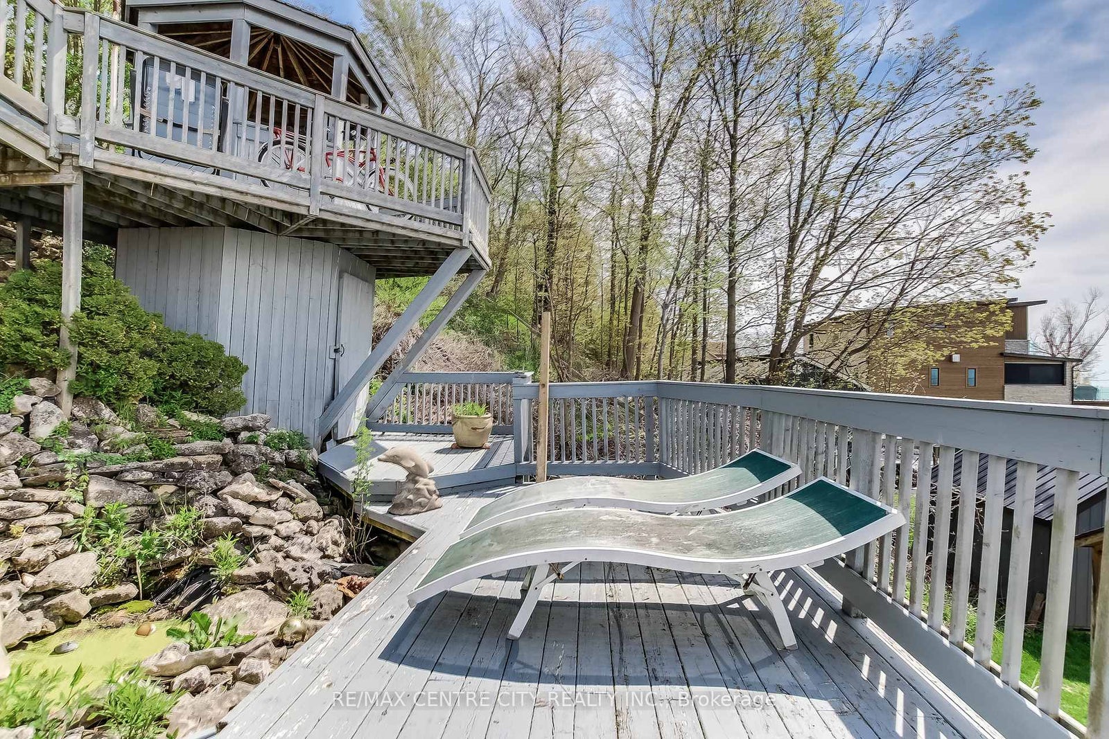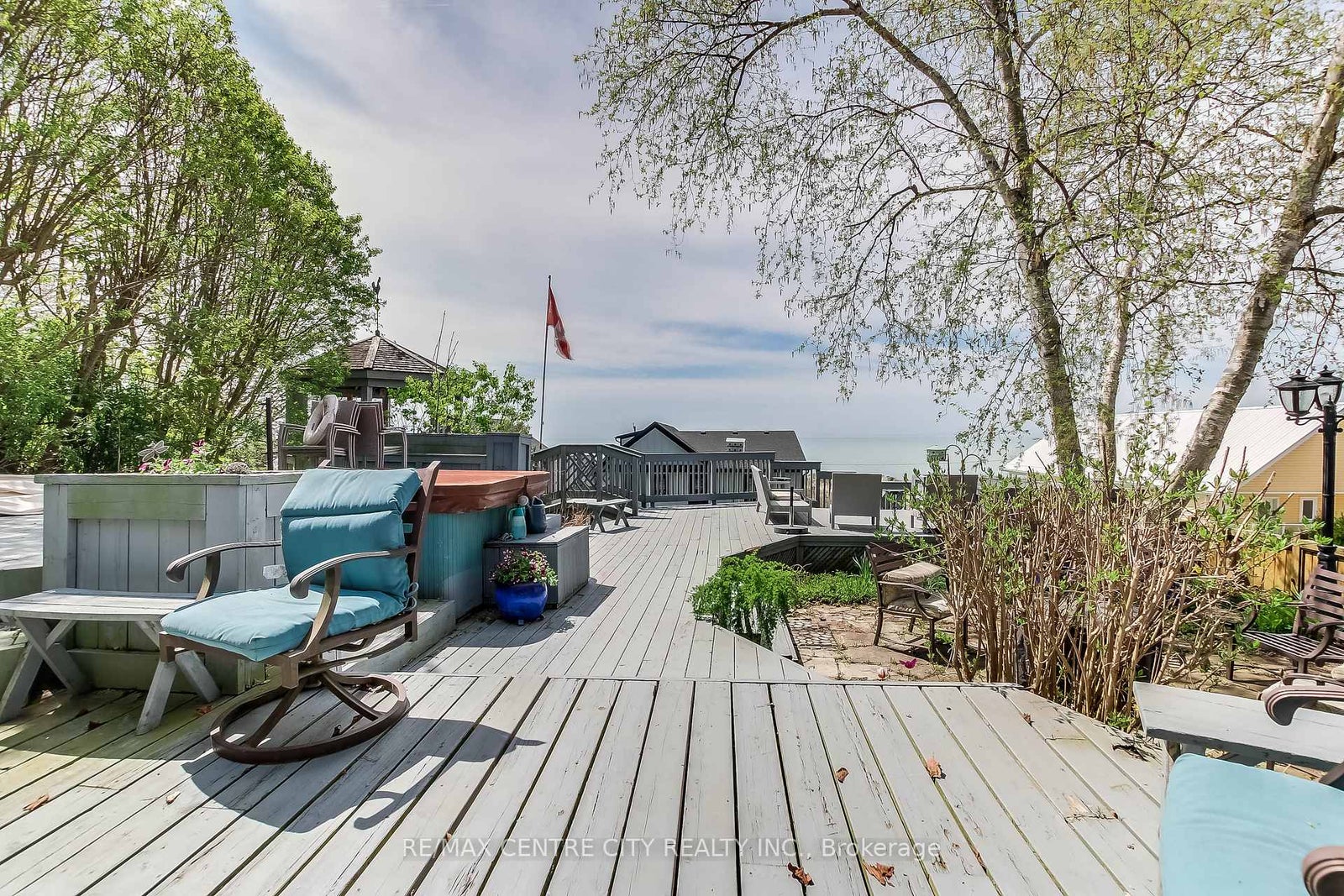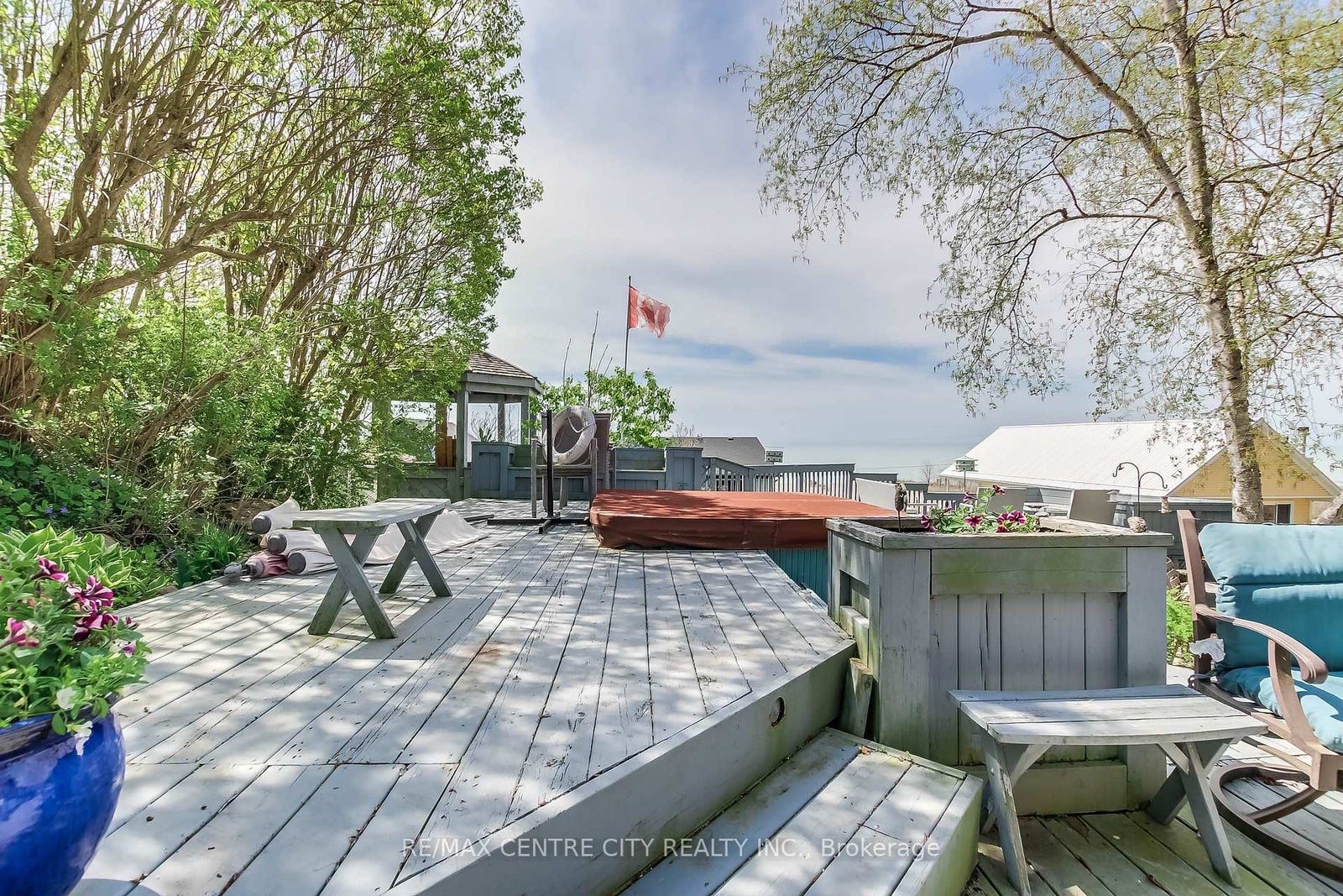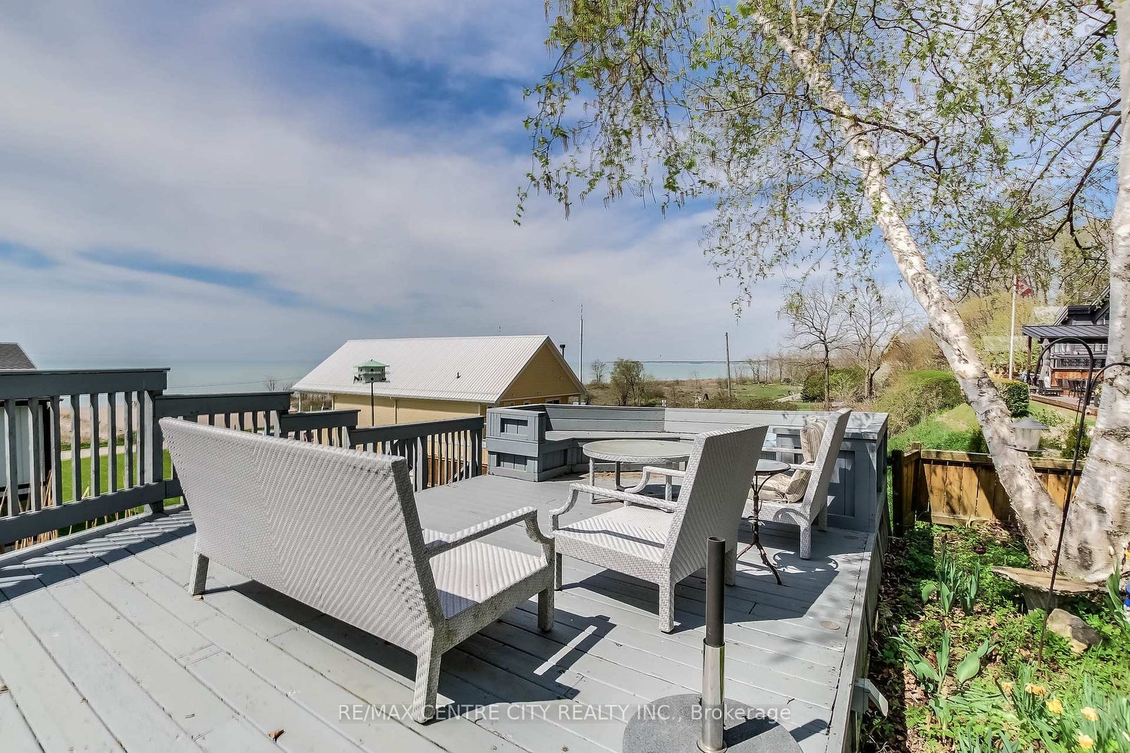 Just steps from Erie Rest beach and nestled in the heart of Port Stanley, this charming bungalow offers the perfect blend of relaxed coastal living and everyday convenience. Walk to local shops, restaurants, and cafés, or simply enjoy the serene atmosphere right at home. A welcoming front walkway, complete with a peaceful frog and fish pond, leads you to a cozy front porch perfect for your morning coffee. Inside, the open-concept layout features a bright kitchen with breakfast bar, flowing into the dining area and living room. The living space is warm and inviting, with a wood-burning fireplace, stunning views, and a walkout to the back deck. The multi-level deck is ideal for entertaining or unwinding, with stairs that take you directly to the beach and offer breathtaking water views. Back inside, you'll find two comfortable bedrooms and a stylish 3-piece bath with heated floors and a skylight. Whether you're looking for a full-time home, weekend getaway, or investment opportunity, this beachside gem checks all the boxes!