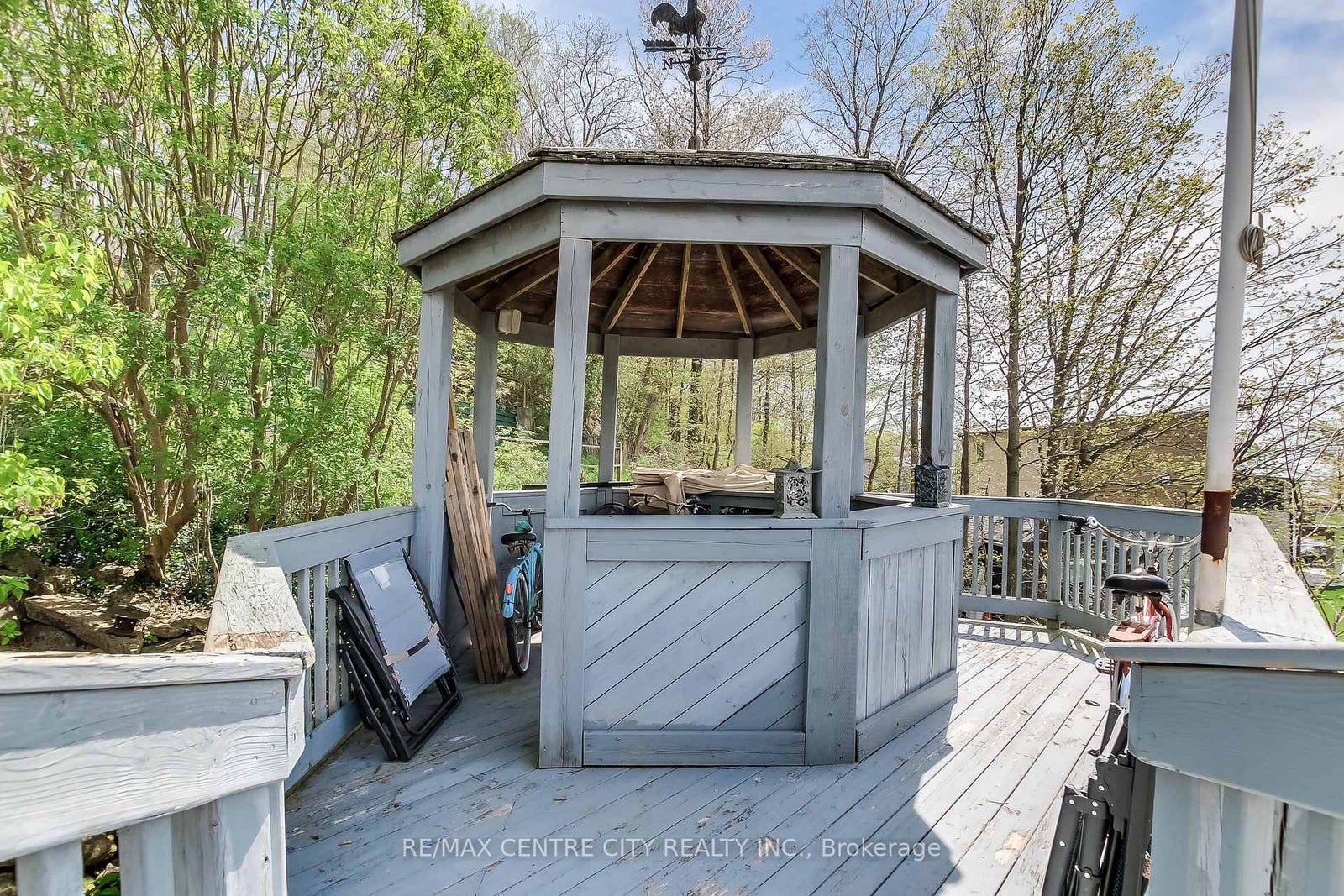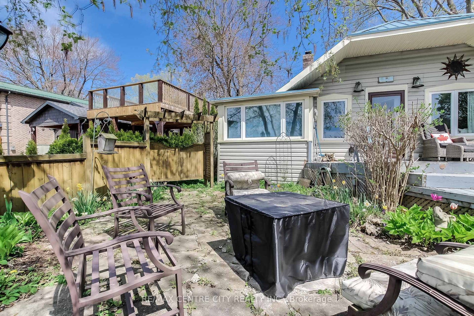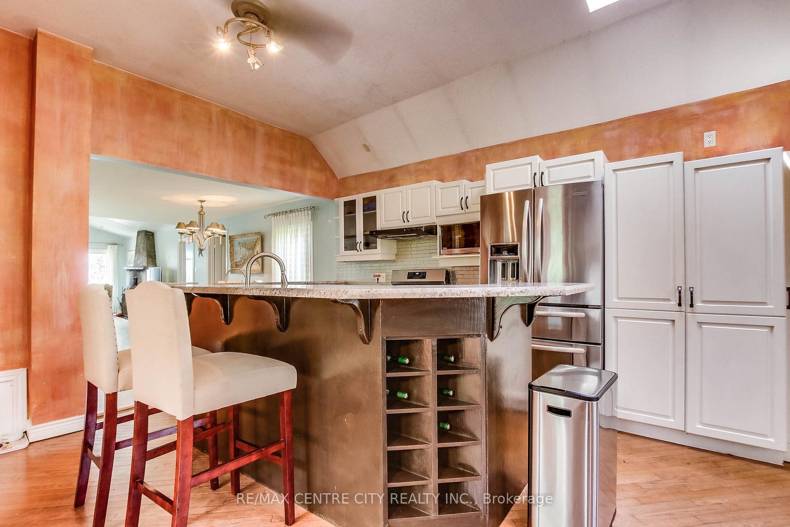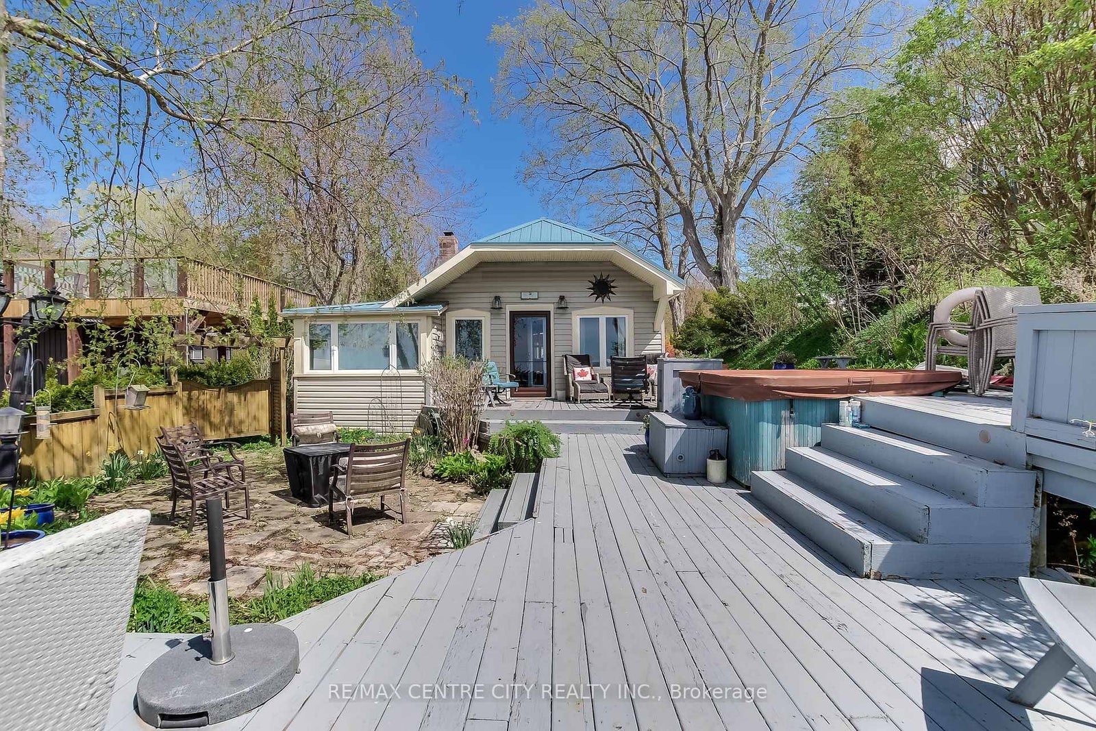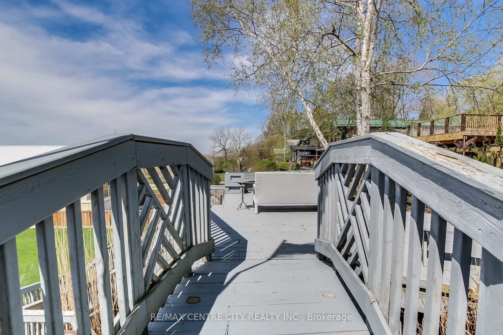 Just steps from Erie Rest beach and nestled in the heart of Port Stanley, this charming bungalow offers the perfect blend of relaxed coastal living and everyday convenience. Walk to local shops, restaurants, and cafés, or simply enjoy the serene atmosphere right at home. A welcoming front walkway, complete with a peaceful frog and fish pond, leads you to a cozy front porch perfect for your morning coffee. Inside, the open-concept layout features a bright kitchen with breakfast bar, flowing into the dining area and living room. The living space is warm and inviting, with a wood-burning fireplace, stunning views, and a walkout to the back deck. The multi-level deck is ideal for entertaining or unwinding, with stairs that take you directly to the beach and offer breathtaking water views. Back inside, you'll find two comfortable bedrooms and a stylish 3-piece bath with heated floors and a skylight. Whether you're looking for a full-time home, weekend getaway, or investment opportunity, this beachside gem checks all the boxes!