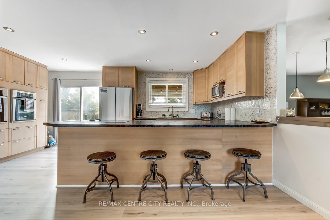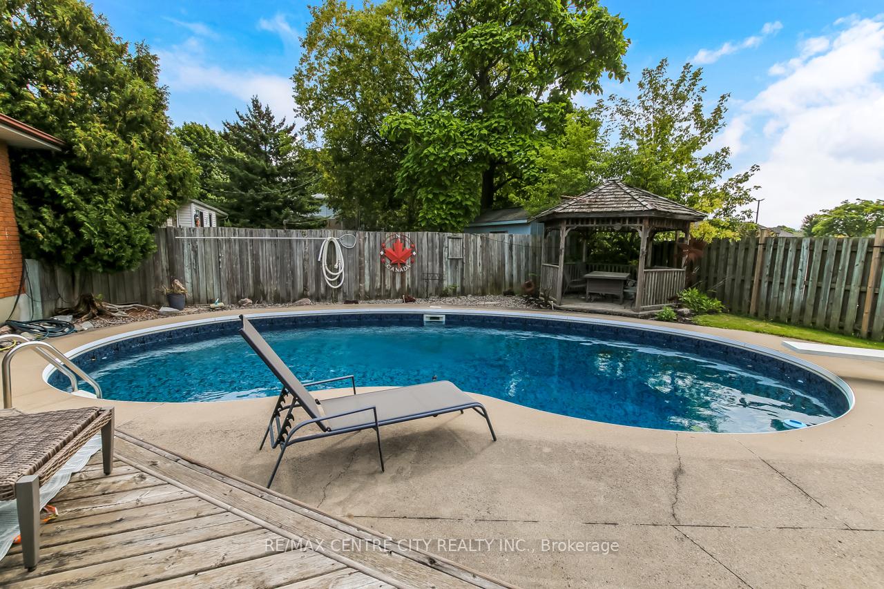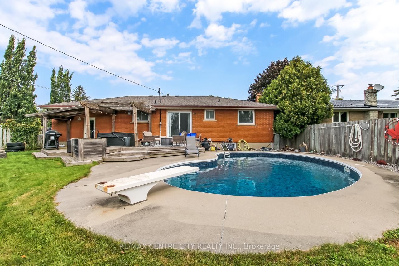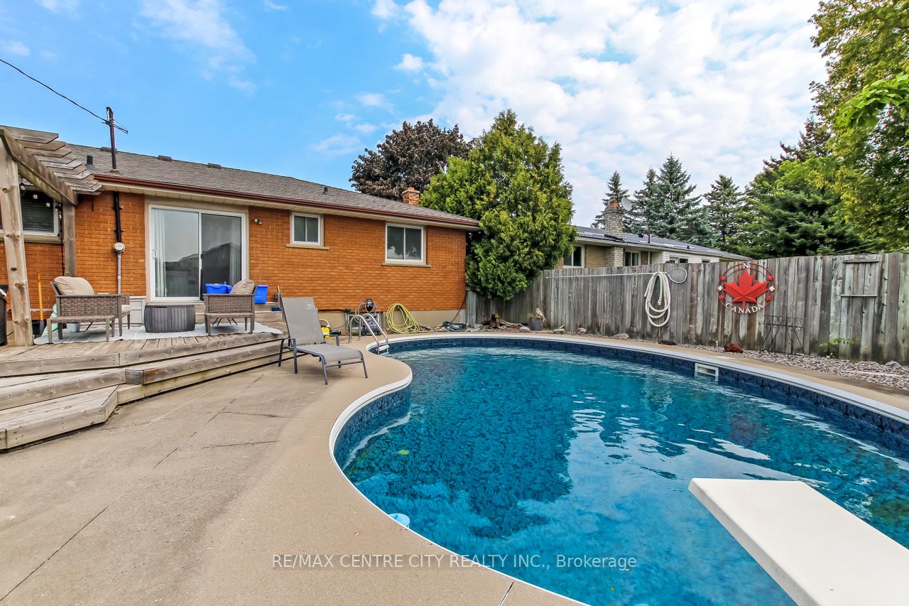 Welcome to 631 Elm Street where comfort, style, and outdoor living come together in this beautiful brick ranch, perfectly situated in a sought-after south side of St. Thomas walking distance to Mitchell Hepburn PS. From the moment you walk through the front door, you'll feel right at home.The spacious front dining room greets you with warmth, offering plenty of space for hosting dinner parties or enjoying quiet family meals. Step just a few stairs up to the heart of the home a bright, open-concept living room and kitchen flooded with natural light. The kitchen is thoughtfully updated and features a built-in cooktop, double built-in ovens, and a convenient breakfast bar perfect for morning coffee or casual meals on the go. Sliding patio doors off the kitchen lead to your private backyard retreat, where you'll find a fully fenced yard, a large deck ideal for entertaining, an in-ground kidney-shaped pool, and a hot tub (negotiable) for year-round relaxation. A charming garden shed offers extra storage for your outdoor essentials. Back inside, the main floor is completed with an updated 5-piece bathroom and three generously sized bedrooms, each offering comfort and privacy for family or guests.The fully finished lower level expands your living space with a large, open family room, with an area perfect for a home gym or playroom, a laundry room, cold storage area, and two additional bedrooms, including one with its own 3-piece ensuite bathroom ideal for a guest suite or teen retreat. Whether you're looking for space to grow, entertain, or unwind, this home offers it all and with plenty of potential to add your own personal touch, 631 Elm Street is ready to welcome you home.