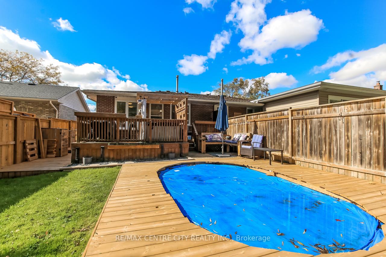 Welcome to this beautifully updated semi-detached bungalow in the heart of Port Stanley. Featuring a private driveway and fully fenced private backyard, this home offers 2+2 bedrooms and 2 bathrooms, providing comfortable, move-in-ready living in a quiet, family-friendly neighbourhood. The main floor welcomes you with bright, open-concept living, enhanced by a large bay window that fills the space with natural light. A cozy electric fireplace creates a warm focal point in the living area, which flows seamlessly into the eat-in kitchen with a breakfast bar-perfect for casual dining and entertaining. Two generous bedrooms and a 4-piece bath complete the upper level. Step out from the kitchen onto your private back deck, where a hot tub awaits-perfect for unwinding or entertaining. The backyard extends your outdoor living space with a spacious deck, pool, and landscaped gardens, complete with additional seating areas for quiet relaxation or hosting guests. Downstairs, the lower level offers a spacious third bedroom, rec room/family room, a 3-piece bathroom with laundry, and a bonus room that can be used as a home office, gym, or additional bedroom-flexibility to suit your lifestyle. This home is perfect for first-time buyers, downsizers, or anyone seeking a turnkey property in a highly desirable lakeside community. Just minutes from Port Stanley's beaches, shops, restaurants, and other local amenities-your ideal beach town lifestyle starts here!