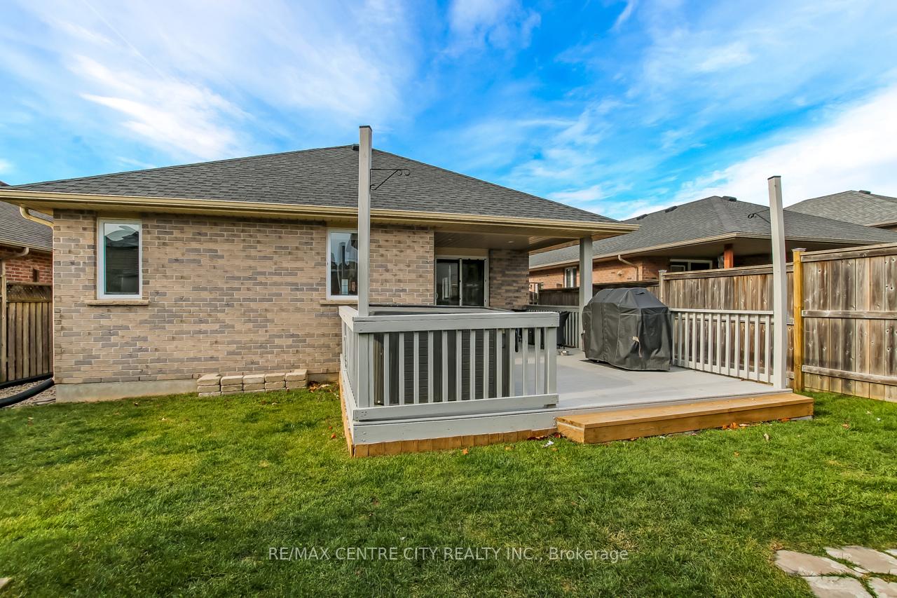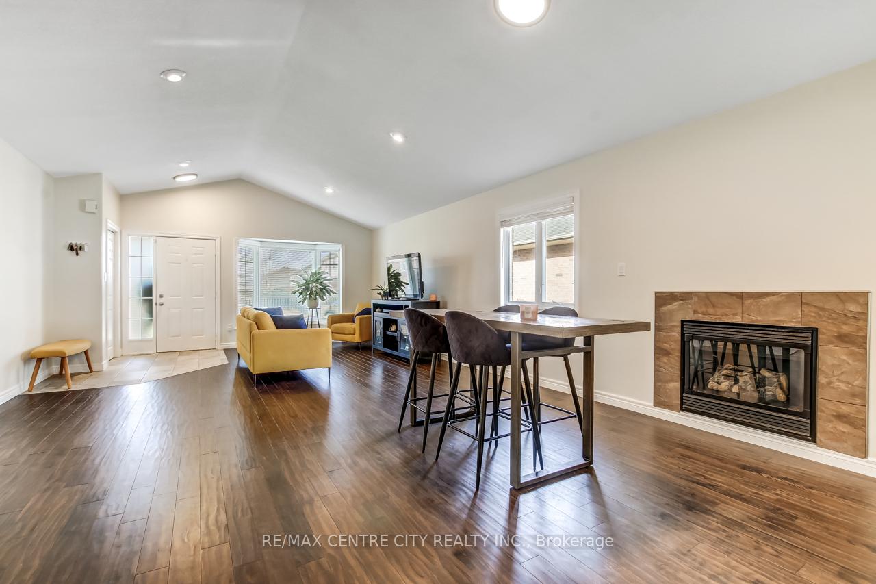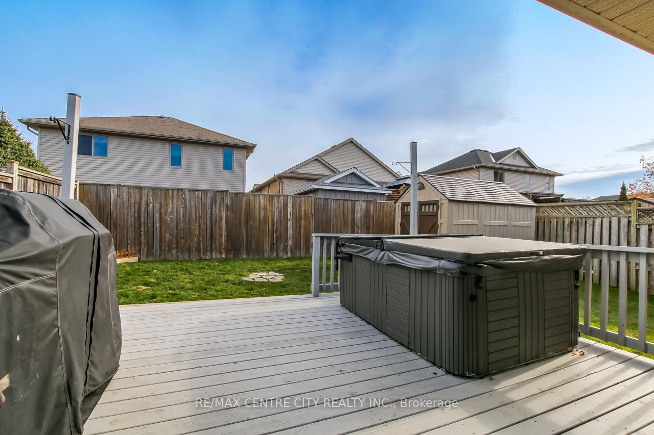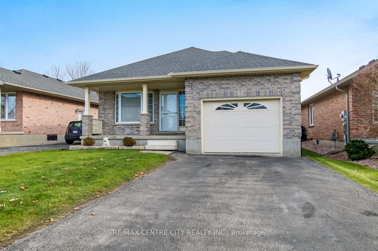 Welcome to 5 Faith Blvd., a warm and inviting brick bungalow tucked into a quiet south-side St. Thomas neighbourhood-just steps from St. Joseph's Secondary School and the Fanshawe College campus. From the moment you arrive, the covered front porch and tidy curb appeal set the tone for a home that's been truly cared for and enjoyed. Inside, cathedral ceilings and a bright open-concept layout create an immediate sense of space. Sunlight pours through the large bay window, filling the living and dining area with natural warmth, while the gas fireplace adds cozy charm. The kitchen overlooks it all-perfect for staying connected while cooking-and features a breakfast bar and pantry for added convenience. The main floor offers a spacious primary bedroom, a versatile second bedroom or office, a 3-piece bath, and easy inside access to the attached 1-car garage. Downstairs, the fully finished lower level expands your living space with a generous family room ideal for movie nights or gatherings, a third bedroom, a den perfect for a home office or hobby space, and another 3-piece bath. A combined laundry and utility area adds convenience, with ample storage found throughout the home. Step into the fully fenced backyard and discover your private retreat: a recently updated covered deck with a gas BBQ hookup, perfect for outdoor dining, a garden shed for additional organization, and a relaxing hot tub to unwind under the night sky. Fresh paint and updated lighting throughout make this home truly move-in ready. Ideal for first-time buyers, downsizers, or anyone seeking a comfortable, well-maintained home in a fantastic location.