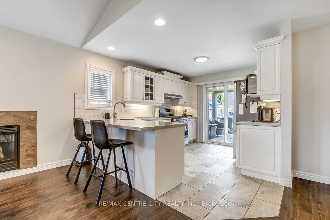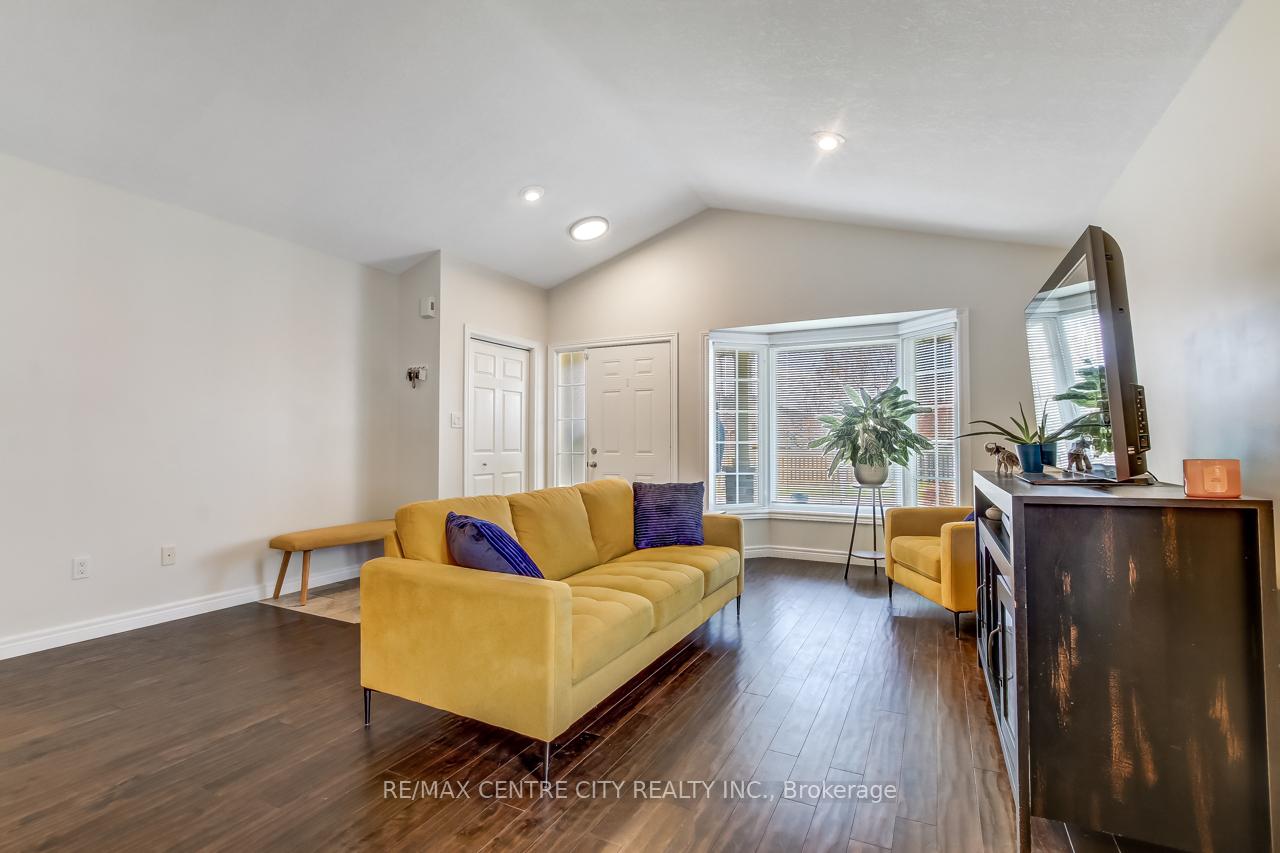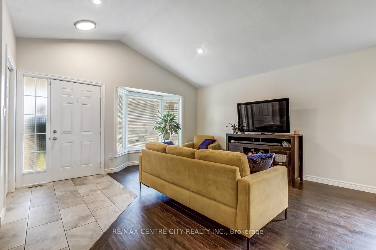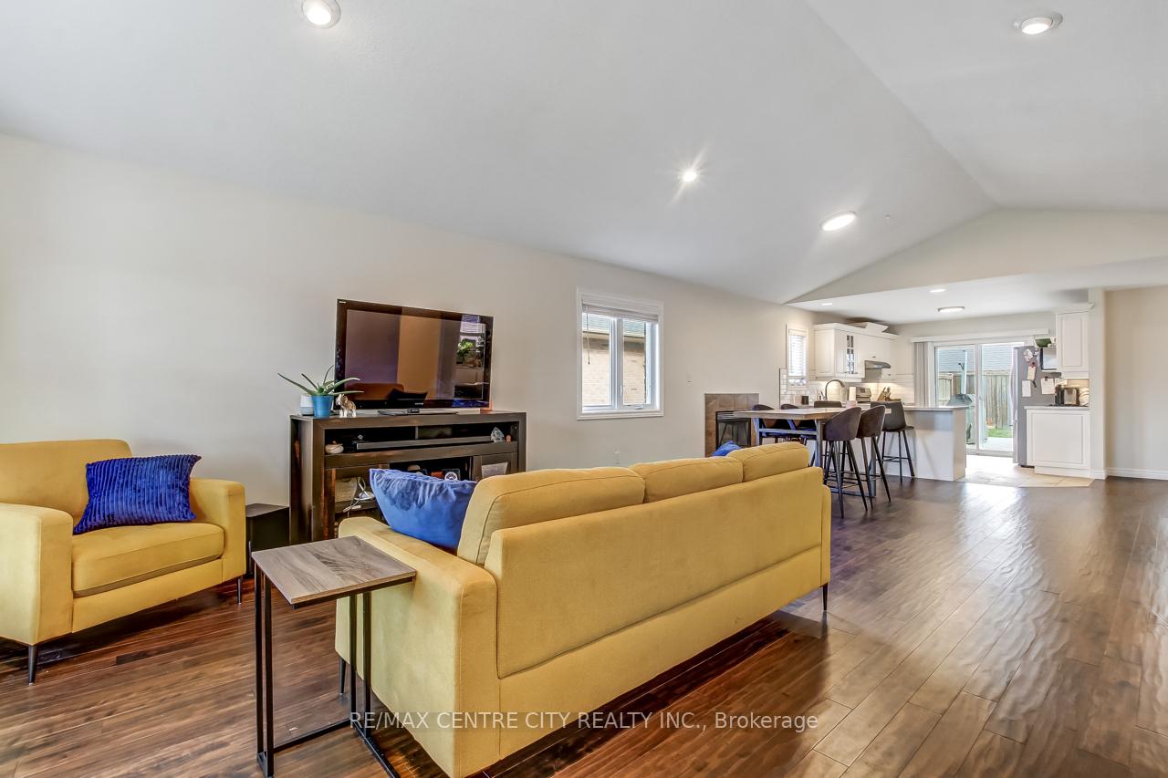 Welcome to 5 Faith Blvd., a warm and inviting brick bungalow tucked into a quiet south-side St. Thomas neighbourhood-just steps from St. Joseph's Secondary School and the Fanshawe College campus. From the moment you arrive, the covered front porch and tidy curb appeal set the tone for a home that's been truly cared for and enjoyed. Inside, cathedral ceilings and a bright open-concept layout create an immediate sense of space. Sunlight pours through the large bay window, filling the living and dining area with natural warmth, while the gas fireplace adds cozy charm. The kitchen overlooks it all-perfect for staying connected while cooking-and features a breakfast bar and pantry for added convenience. The main floor offers a spacious primary bedroom, a versatile second bedroom or office, a 3-piece bath, and easy inside access to the attached 1-car garage. Downstairs, the fully finished lower level expands your living space with a generous family room ideal for movie nights or gatherings, a third bedroom, a den perfect for a home office or hobby space, and another 3-piece bath. A combined laundry and utility area adds convenience, with ample storage found throughout the home. Step into the fully fenced backyard and discover your private retreat: a recently updated covered deck with a gas BBQ hookup, perfect for outdoor dining, a garden shed for additional organization, and a relaxing hot tub to unwind under the night sky. Fresh paint and updated lighting throughout make this home truly move-in ready. Ideal for first-time buyers, downsizers, or anyone seeking a comfortable, well-maintained home in a fantastic location.