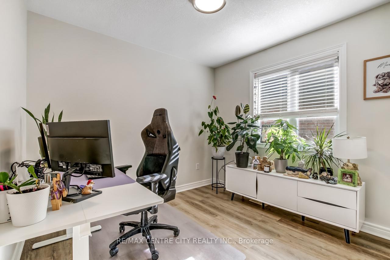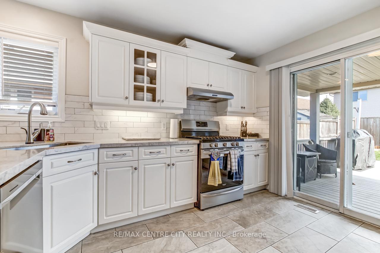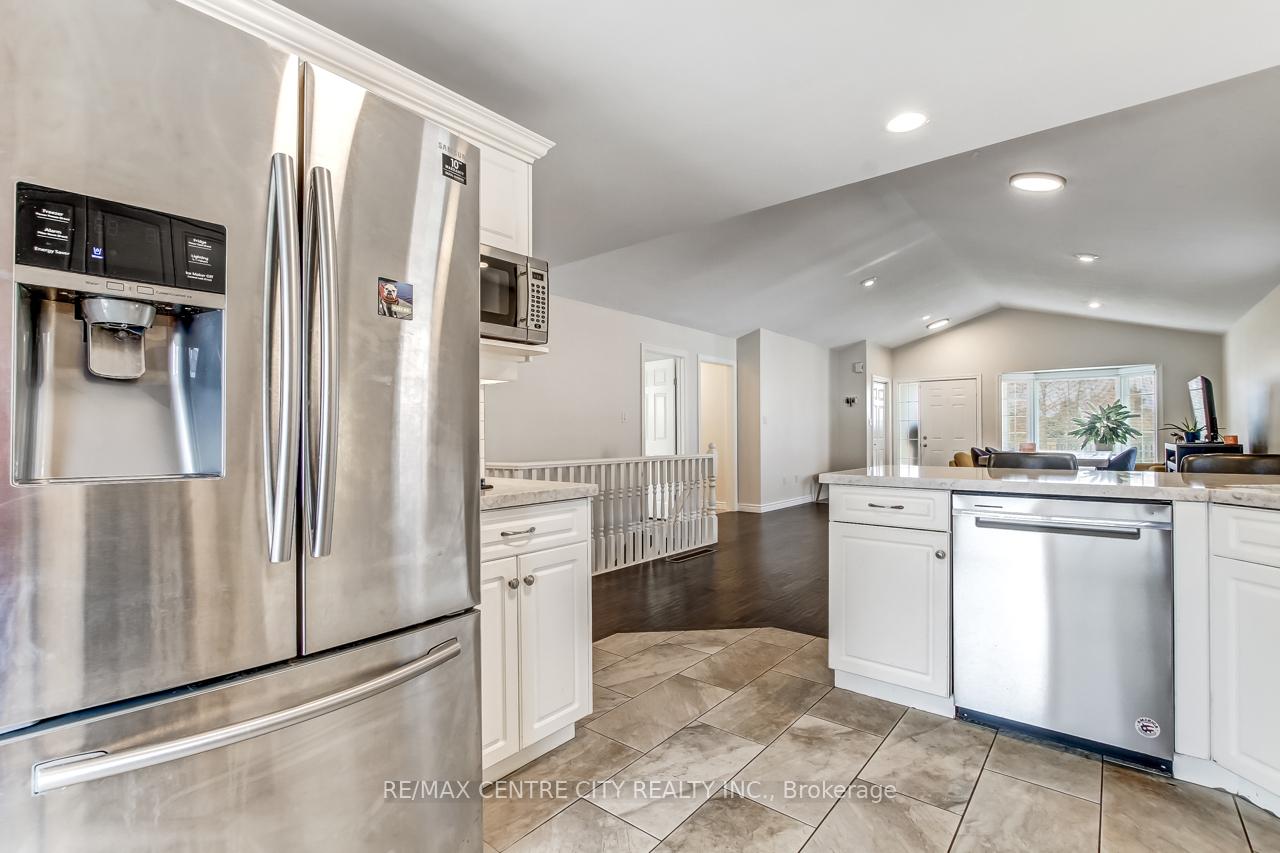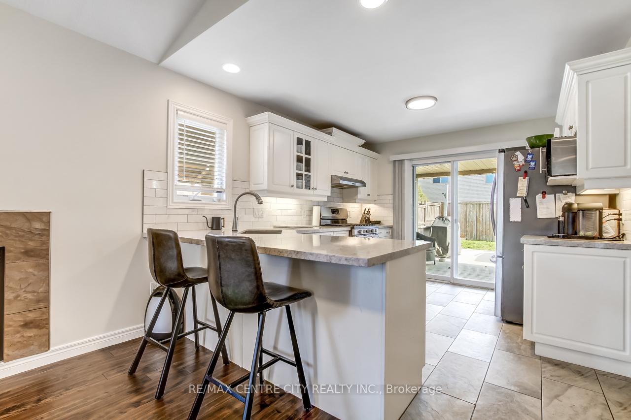 Welcome to 5 Faith Blvd., a warm and inviting brick bungalow tucked into a quiet south-side St. Thomas neighbourhood-just steps from St. Joseph's Secondary School and the Fanshawe College campus. From the moment you arrive, the covered front porch and tidy curb appeal set the tone for a home that's been truly cared for and enjoyed. Inside, cathedral ceilings and a bright open-concept layout create an immediate sense of space. Sunlight pours through the large bay window, filling the living and dining area with natural warmth, while the gas fireplace adds cozy charm. The kitchen overlooks it all-perfect for staying connected while cooking-and features a breakfast bar and pantry for added convenience. The main floor offers a spacious primary bedroom, a versatile second bedroom or office, a 3-piece bath, and easy inside access to the attached 1-car garage. Downstairs, the fully finished lower level expands your living space with a generous family room ideal for movie nights or gatherings, a third bedroom, a den perfect for a home office or hobby space, and another 3-piece bath. A combined laundry and utility area adds convenience, with ample storage found throughout the home. Step into the fully fenced backyard and discover your private retreat: a recently updated covered deck with a gas BBQ hookup, perfect for outdoor dining, a garden shed for additional organization, and a relaxing hot tub to unwind under the night sky. Fresh paint and updated lighting throughout make this home truly move-in ready. Ideal for first-time buyers, downsizers, or anyone seeking a comfortable, well-maintained home in a fantastic location.