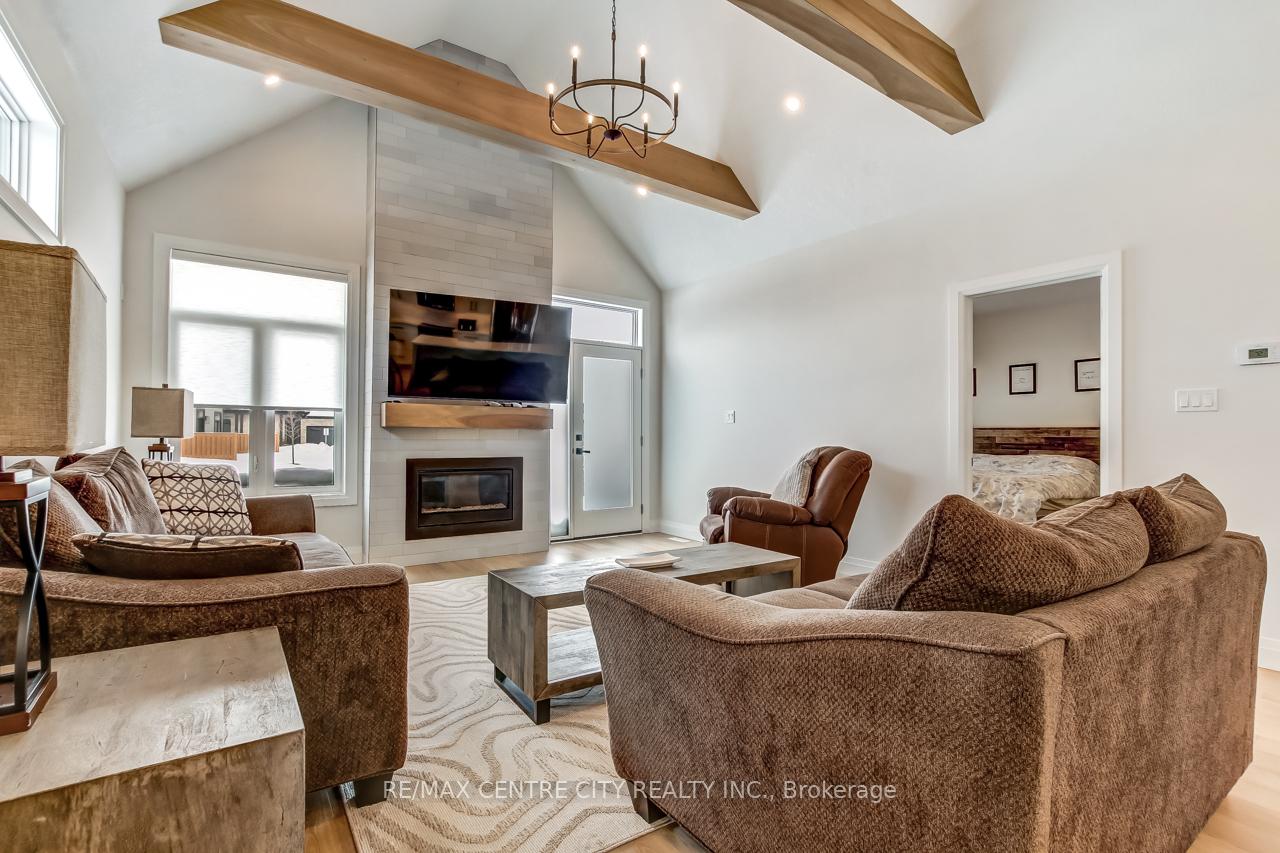 Welcome to 63 Compass Trail, Unit 35, a newly completed condo development where you can move in immediately without the hassle or delays of construction. This sought-after location offers walking distance to the beach, downtown amenities, parks, and paved walking paths, making everyday living both convenient and enjoyable. A welcoming foyer sets the tone as you enter the home. Just off the entrance is a bright first bedroom or home office, highlighted by a large south-facing window. Continuing down the hallway, you'll find a 4-piece bathroom and direct access to the attached double-car garage. The heart of the home is a showstopper - an open-concept living space with vaulted ceilings and exposed beams, creating a bright and airy atmosphere. The oversized kitchen island with breakfast bar anchors the space and is ideal for hosting family and friends. The kitchen is finished with floor-to-ceiling cabinetry, quartz countertops, and ample prep and storage space. The adjoining living room includes a gas fireplace and opens to the back patio with a gas BBQ hookup, extending your living space outdoors. The primary bedroom is conveniently located on the main floor, complete with a walk-in closet and a 4-piece ensuite bathroom. A main-floor laundry room adds everyday convenience, making this home especially appealing for those seeking main-floor living. The finished basement offers additional living space, including a third bedroom, 2-piece bathroom, and a recreation room perfect for relaxing or entertaining. There is also ample storage in the utility room, with the potential to create a fourth bedroom if desired. Step outside to enjoy your personal patio space, ideal for unwinding or entertaining. Residents of this well-maintained condo complex also enjoy access to an outdoor swimming pool and ample visitor parking. A bright, modern home in a fantastic location-move-in ready and waiting for you.