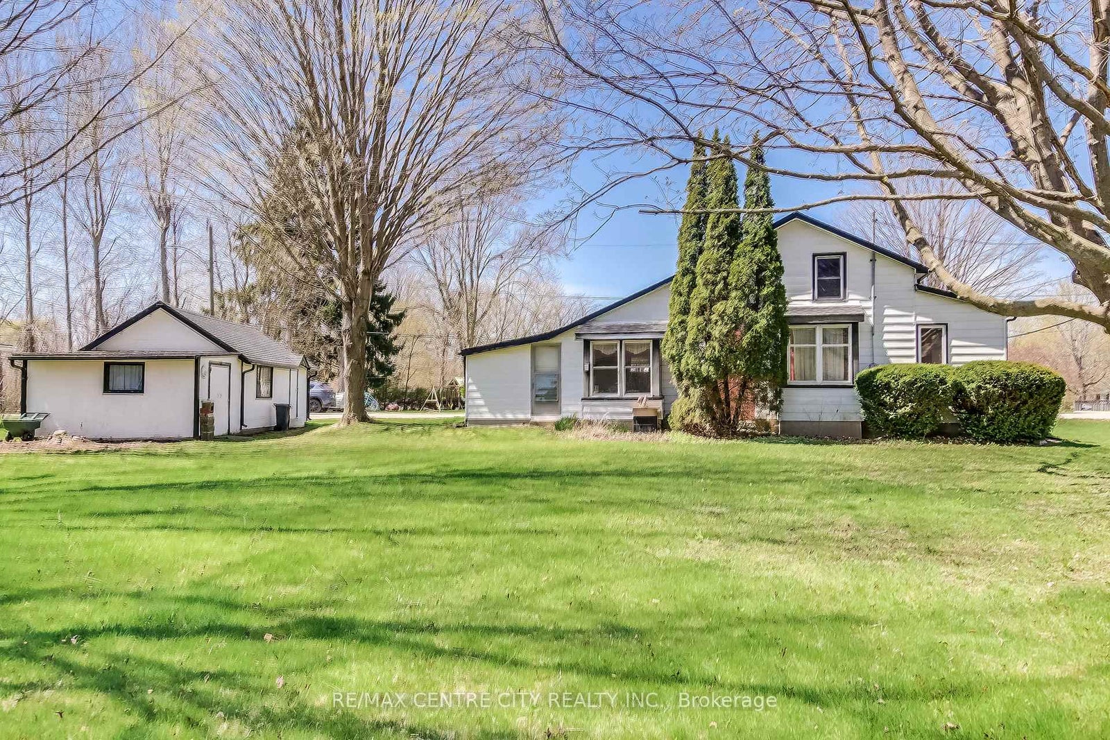 Welcome to this delightful 1 1/2 story home tucked away on a sunny corner lot in the sought after lakeside community of Port Stanley. Brimming with character and development potential, this home offers charm and opportunity at every turn. Step inside to a functional kitchen that anchors the main floor, with a full 4-piece bathroom just off to the side. The layout flows into a cozy dining area and an inviting living room perfect for family gatherings or quiet evenings in. The primary bedroom is conveniently located on the main level, while the living room features a separate entrance and its own foyer, adding flexibility to the space. You'll also find a dedicated laundry room and a bonus storage area, adding to the home's everyday practicality, Upstairs, two additional bedrooms provide space for family, guests, or a home office. Outside, the yard offers green space ideal for play, gardening, or simply relaxing in the fresh air. Whether you're searching for a charming full time residence, a weekend escape, or a property with room to personalize and grow, this home is full of potential just minutes from the beach, boutique shops, and the vibrant local dining. Don't miss your chance to make it your own! LOT SIZE - 140.82ft x 115.41ft x 68.05ft x 4.41ft x 46.71ft x 94.67ft.