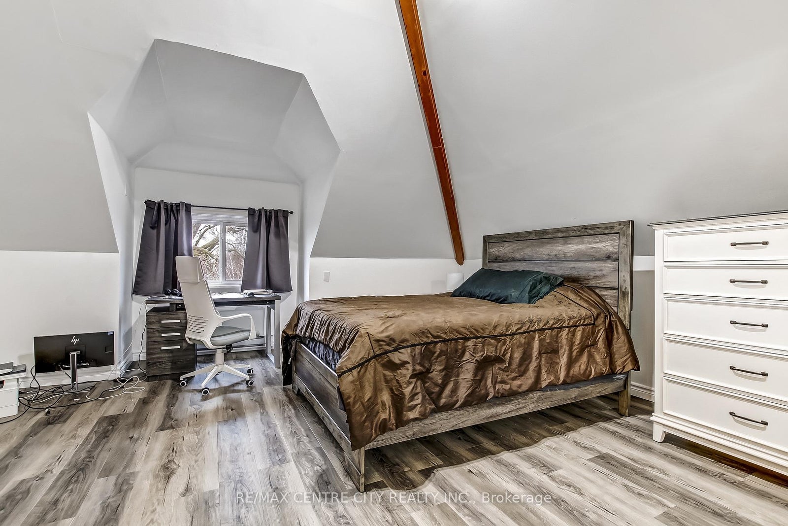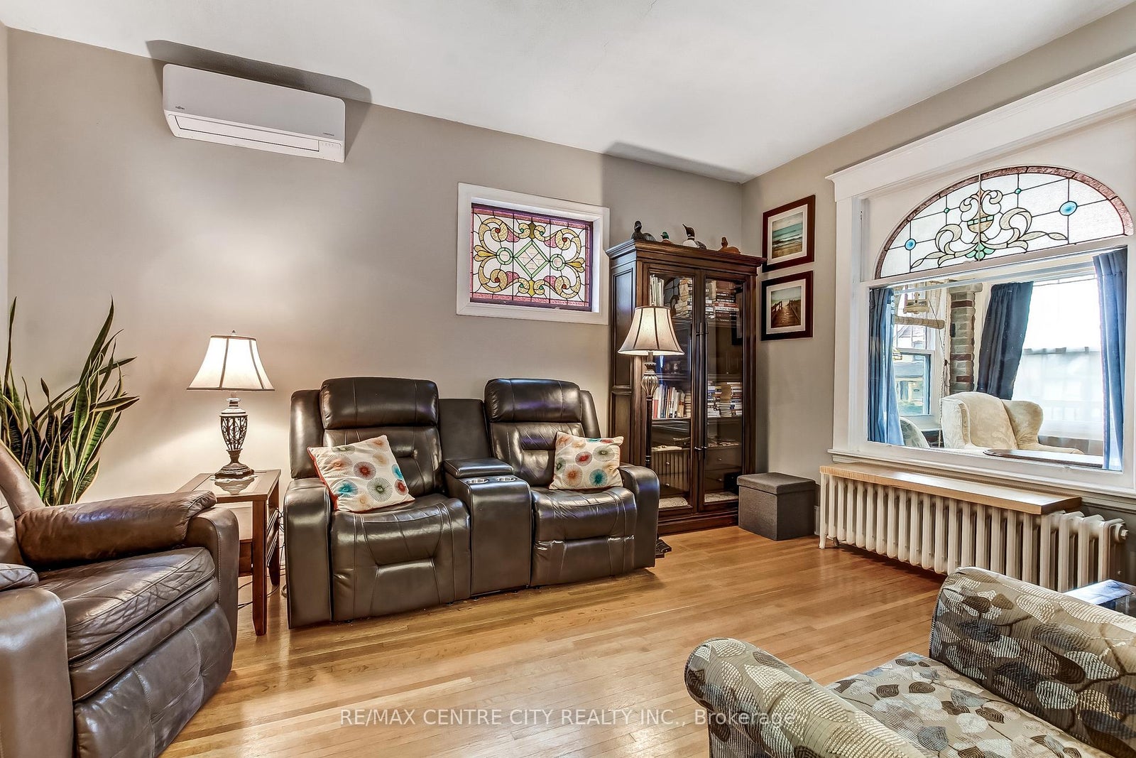 Welcome to 92 Forest Ave - a charming 2.5-storey brick home in the heart of St. Thomas, full of character and offering excellent flexibility for multi-generational living or income potential. This well-maintained property features two separately metered units, including a bright upper in-law suite. Original details shine throughout the home, including multiple beautiful stained-glass windows that add warmth and timeless charm. The upper-level unit has its own private entrance and features an eat-in kitchen, 4-piece bath, and convenient mudroom/laundry space. The spacious bedroom loft is filled with natural light and offers plenty of room for a reading nook, home office, or creative space, along with a generous walk-in closet. The main unit is equally inviting, offering three bedrooms plus a basement office space. A welcoming sunroom is perfect for morning coffee, while the living room and formal dining room provide comfortable spaces for everyday living and entertaining. The kitchen is functional and well-appointed, and the main bathroom features in-floor heating and an accessible bathtub with grab bars and seating. In total, the main unit offers 2.5 bathrooms. The basement adds additional flexibility with laundry, storage space, a 3-piece bathroom, utility room, and dedicated office. Recent improvements include electrical updates, all new windows, new attic subfloor, updated flooring and baseboards, new carpet, modern lighting, fresh paint, added insulation, interior doors, updated powder room, and completed brick pointing. Energy-efficient mini-split systems have also been installed on the main floor and loft, providing comfortable heating and cooling year-round. Outside, you'll find a shared driveway leading to an oversized one-car garage with carport. Beyond the garage is a fully fenced backyard-perfect for enjoying summer evenings, entertaining, gardening, or giving your furry friends room to play. A wonderful opportunity to own a character-filled home.