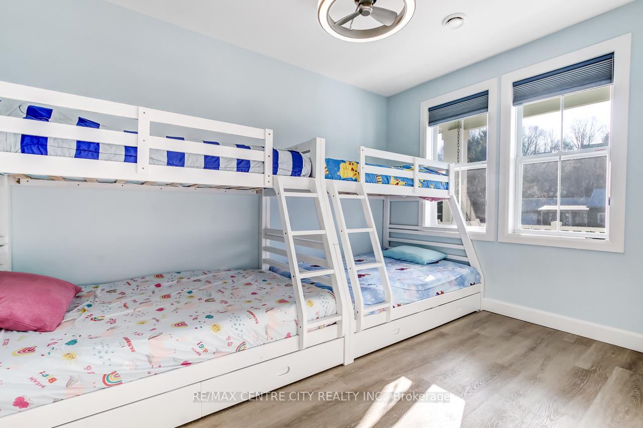 Welcome to 423 George Street in the sought-after Kokomo Beach Club Development, located in the heart of the charming beach village of Port Stanley. This beachy bungalow offers 2 bedrooms plus a versatile den with a Murphy bed, providing flexible space for family and guests. A charming front porch with a porch swing welcomes you home - perfect for enjoying your morning coffee or relaxing in the evening. Step inside to a spacious foyer leading to a bright guest bedroom with front-facing windows and two bunk beds (single over double), comfortably sleeping up to six. The open-concept kitchen, dining, and living area is ideal for entertaining. The kitchen features stainless steel appliances, including fridge, stove, dishwasher, and over-the-range microwave, along with a large island overlooking the dining area. A built-in dining bench with added storage provides ample seating. The sun-filled living room flows into a den just off the space, complete with a Murphy bed - ideal as a guest room, office, playroom, or reading nook. Down the hall, you'll find a mudroom with built-in storage, combined laundry with stackable washer/dryer, and direct access to the attached two-car garage. The main floor also offers a 4-piece bathroom and a spacious primary bedroom with its own 3-piece ensuite. Outside, enjoy a partially fenced yard with an 8' x 20' deck and gas BBQ - perfect for summer evenings. As a Kokomo Beach Club member, owners enjoy access to amenities including the gym, pool and community room, with a monthly fee of $80. Ideal as a cottage getaway, first-time home, or downsizer, this single-level home offers easy one - floor living just minutes from the beach, shops, and all the coastal charm Port Stanley has to offer.